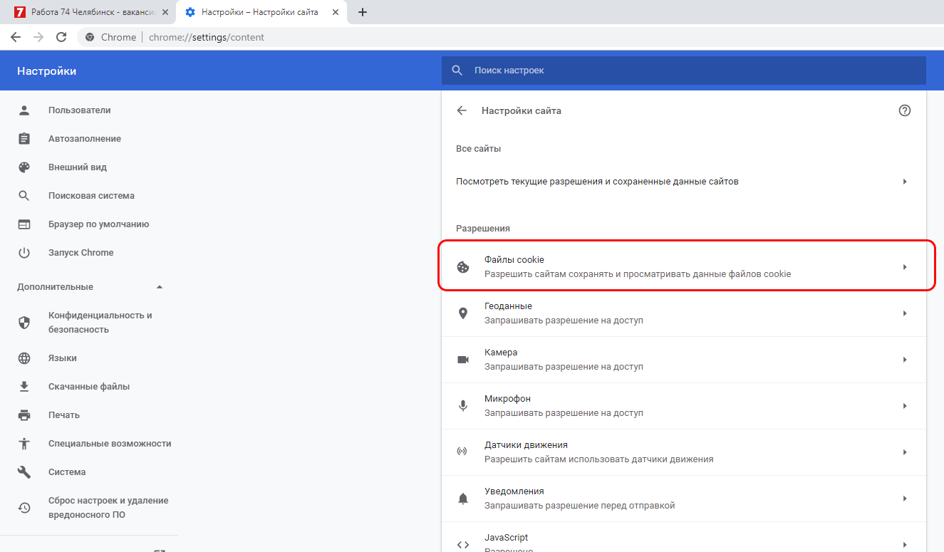5. Далее "Файлы Cookie";