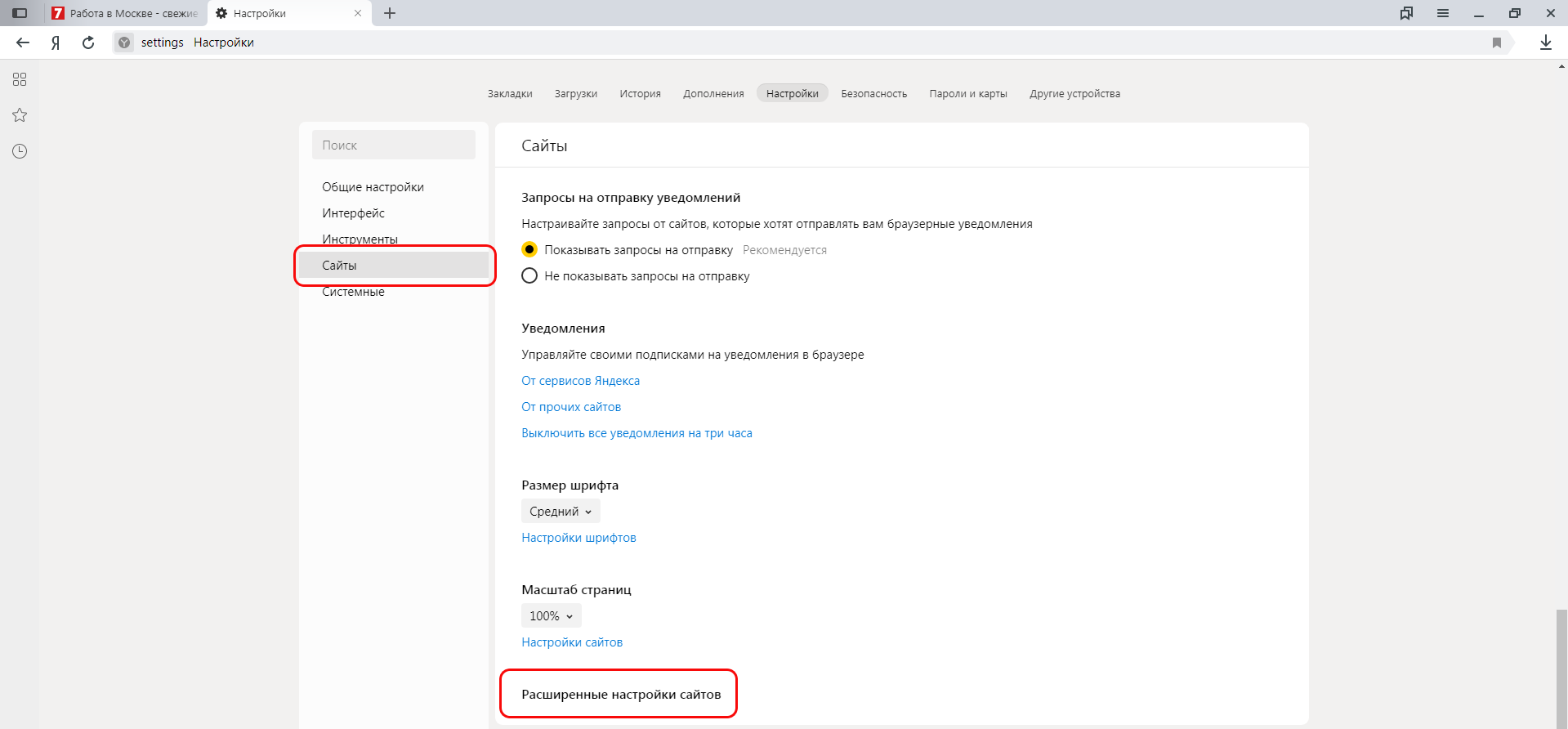 3. В нижней части окна нажмите на "Расширенные настройки";