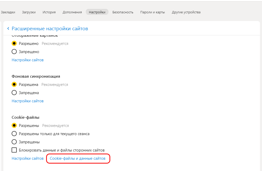 5. Далее "cookie-файлы и данные сайтов...";